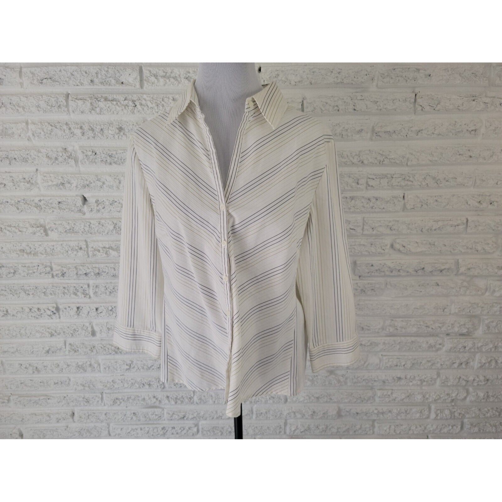 Worthington Women Shirt 18 Plus Button Up Collar Easy Care White Stripe Office