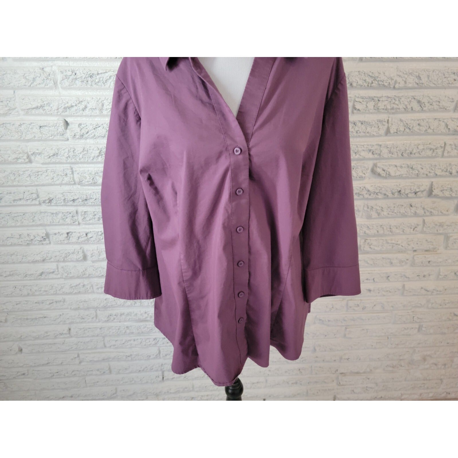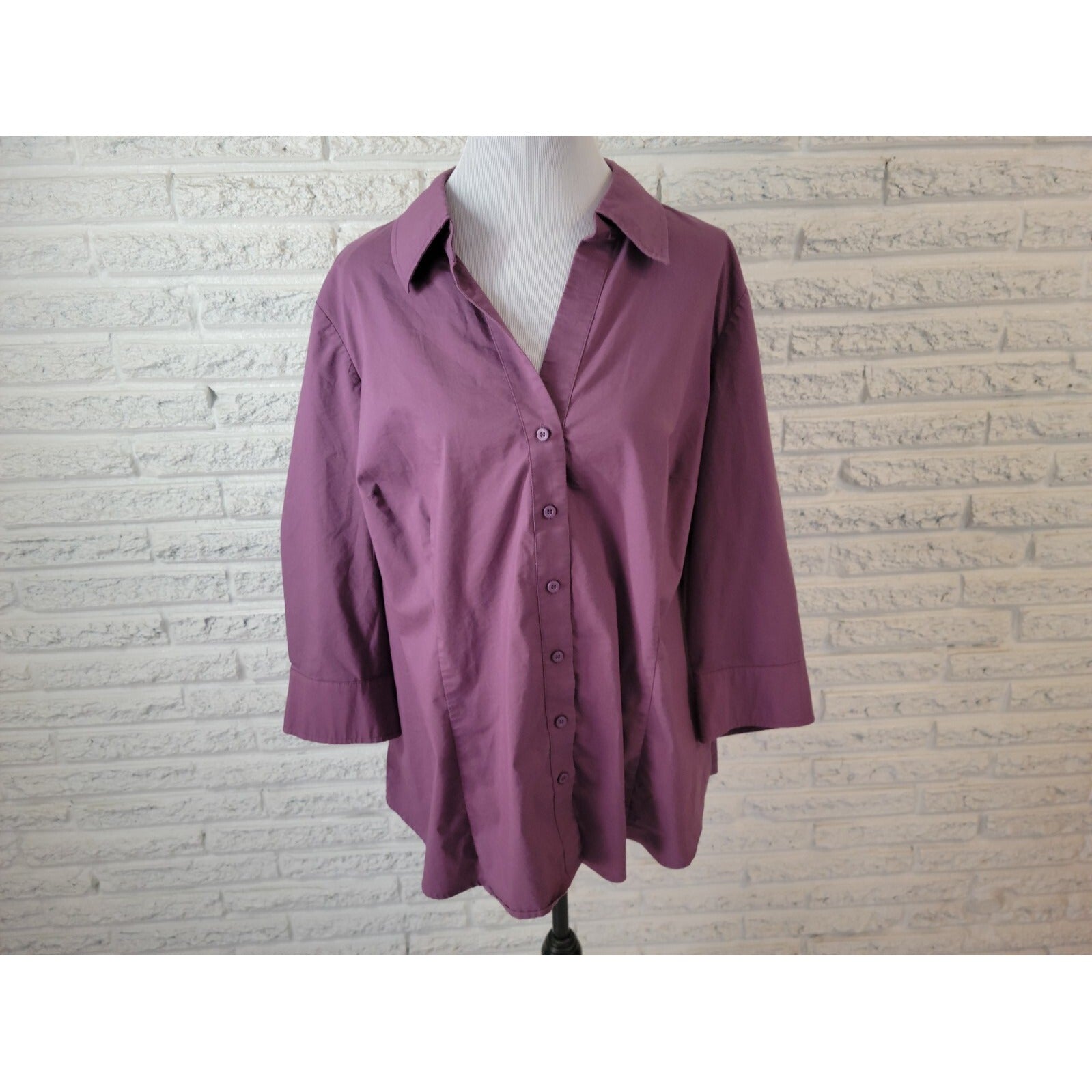 Worthington Women Shirt 3X Plus 3/4 Sleeve Collar Button Up Purple Lightweight