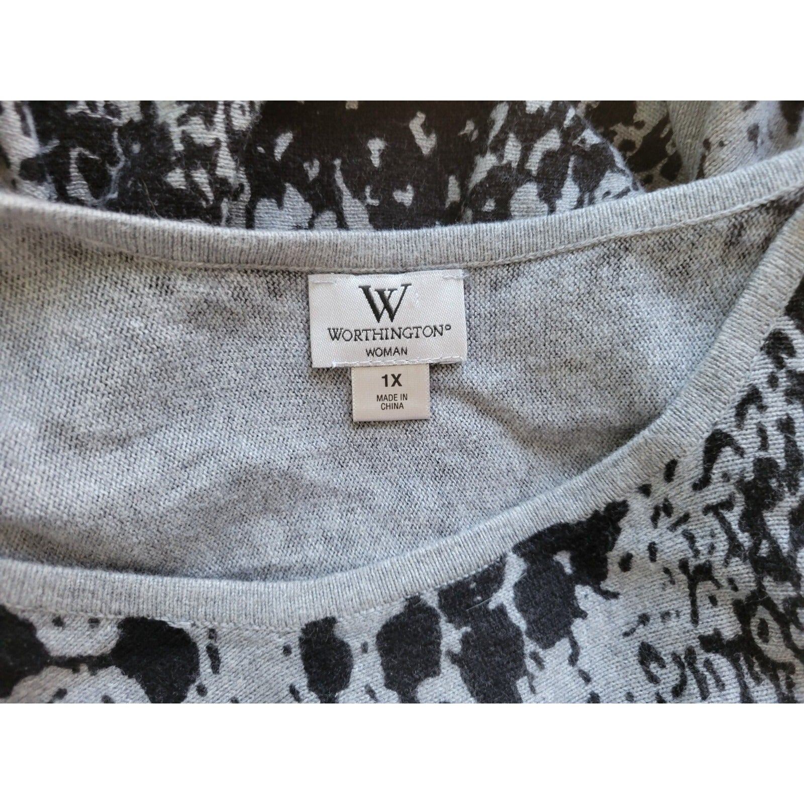 Worthington Womens Sweater 1X Plus Dolman Sleeve Black Watercolor Lightweight