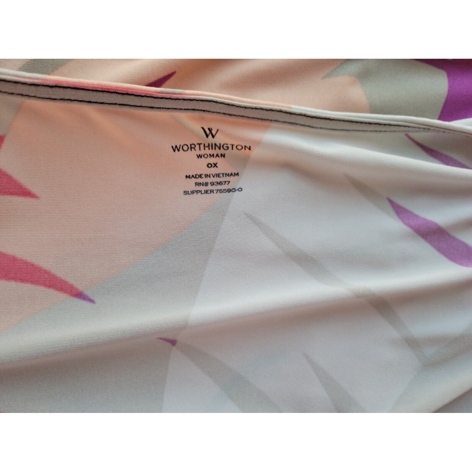 Worthington Womens Top 0X Plus Short Sleeve Pink Geometric Poly Blend Pleated