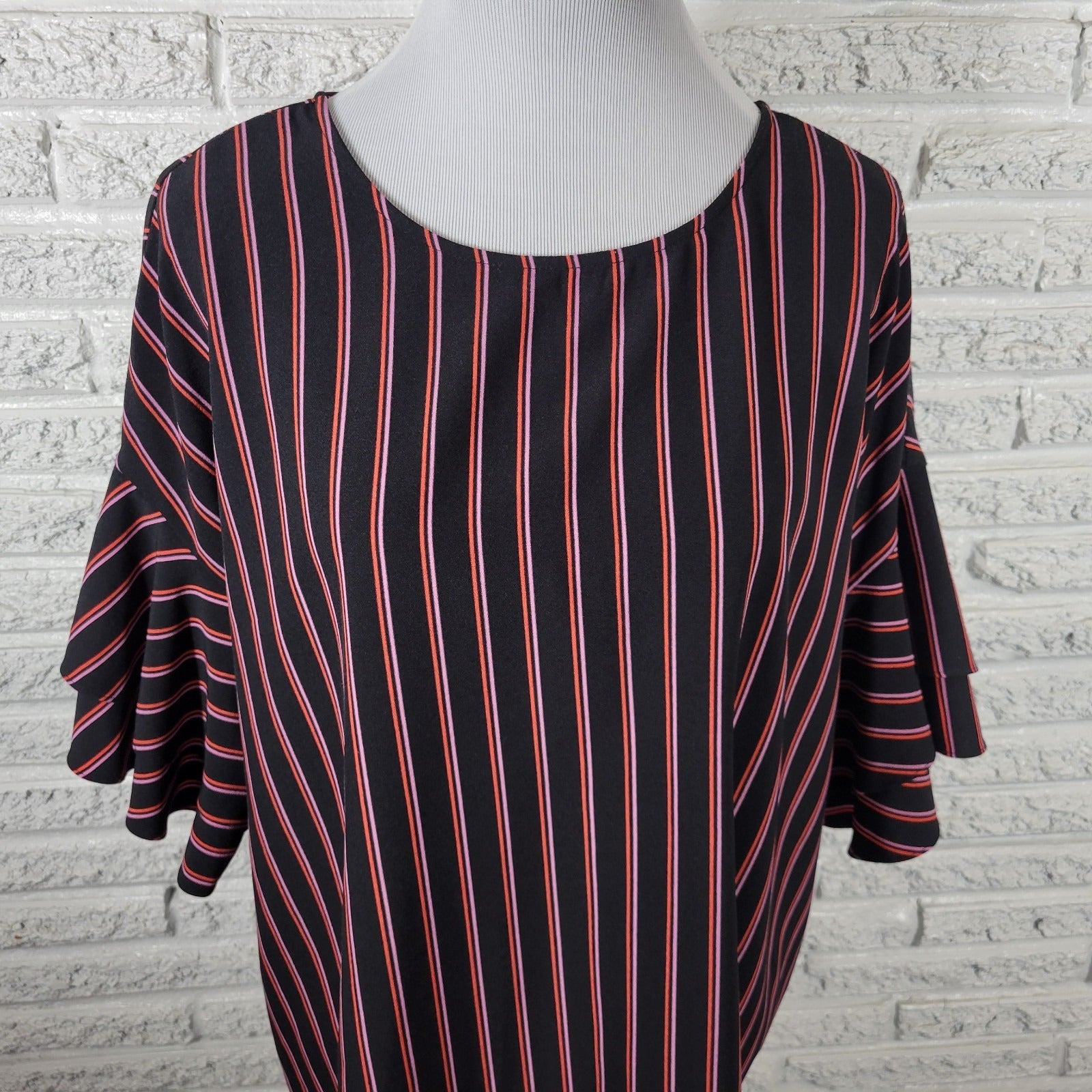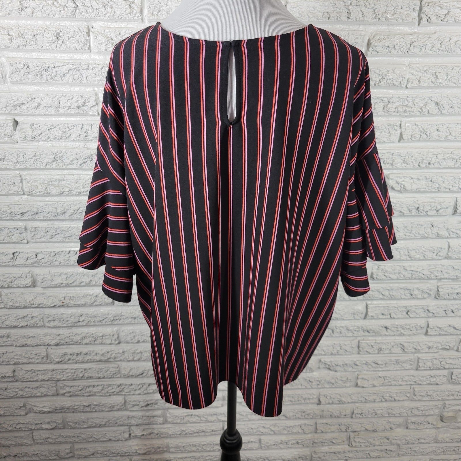 Worthington Womens Top 1X Plus Double Bell Sleeve Black Stripe Back Keyhole