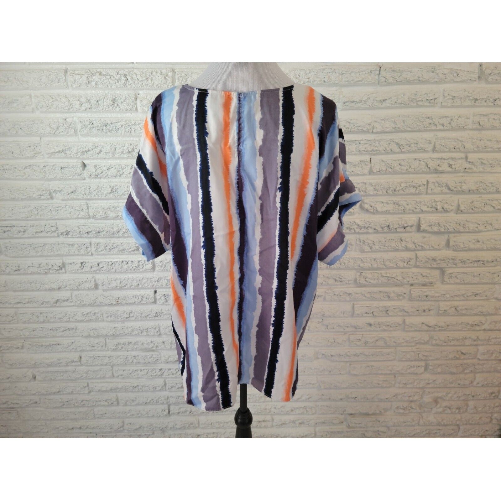 Worthington Womens Top 1X Plus Lightweight Keyhole Back Blue Watercolor Career