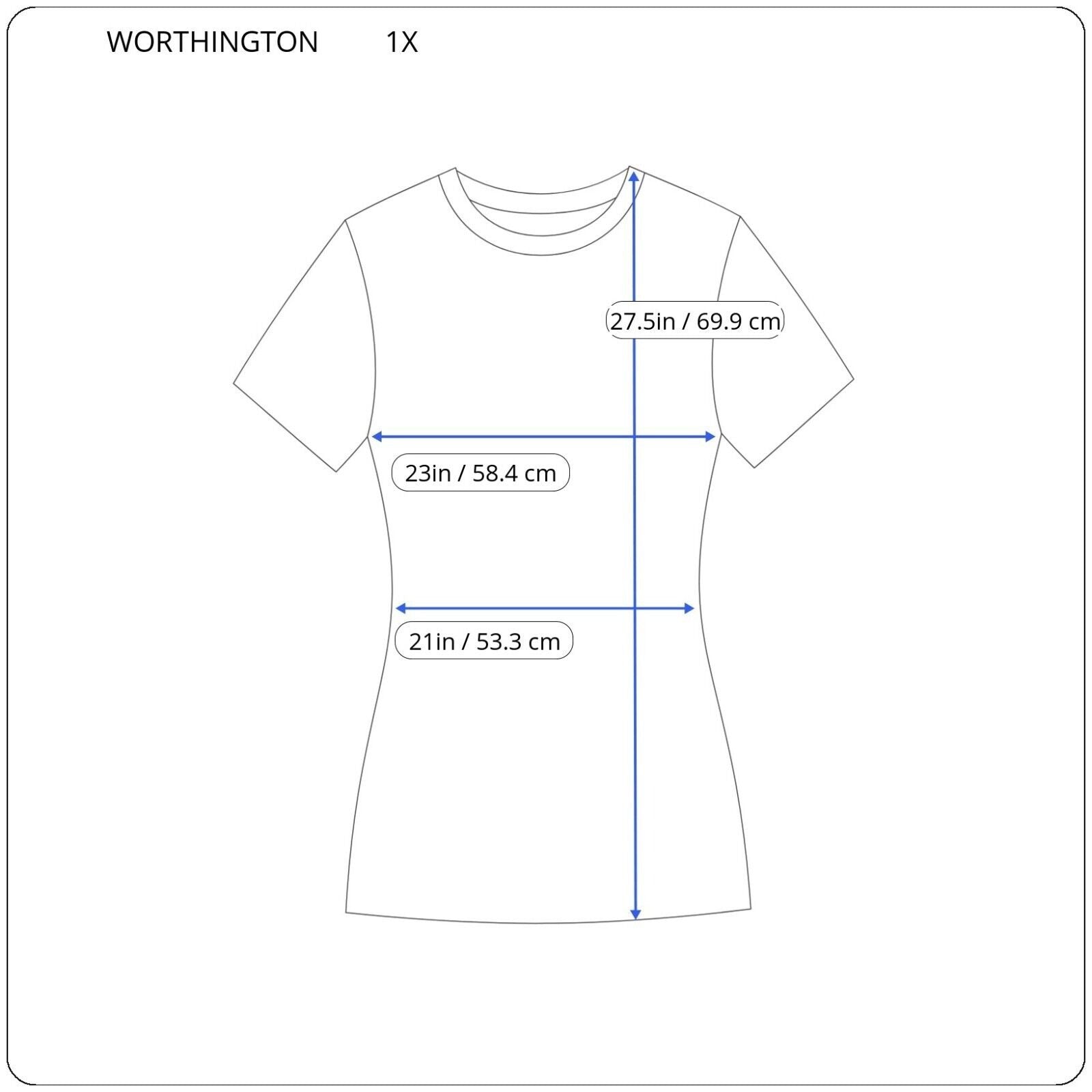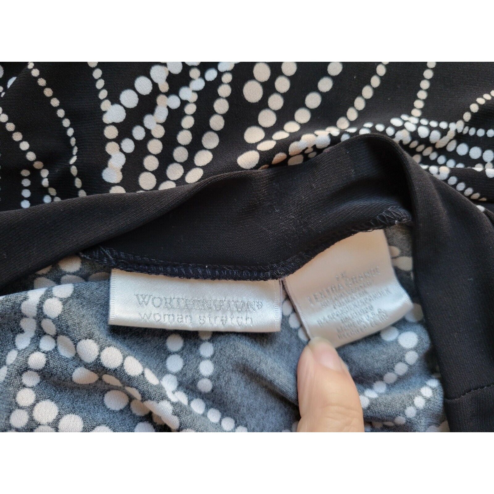 Worthington Womens Top 1X Plus Short Sleeve Black Geometric Career Casual