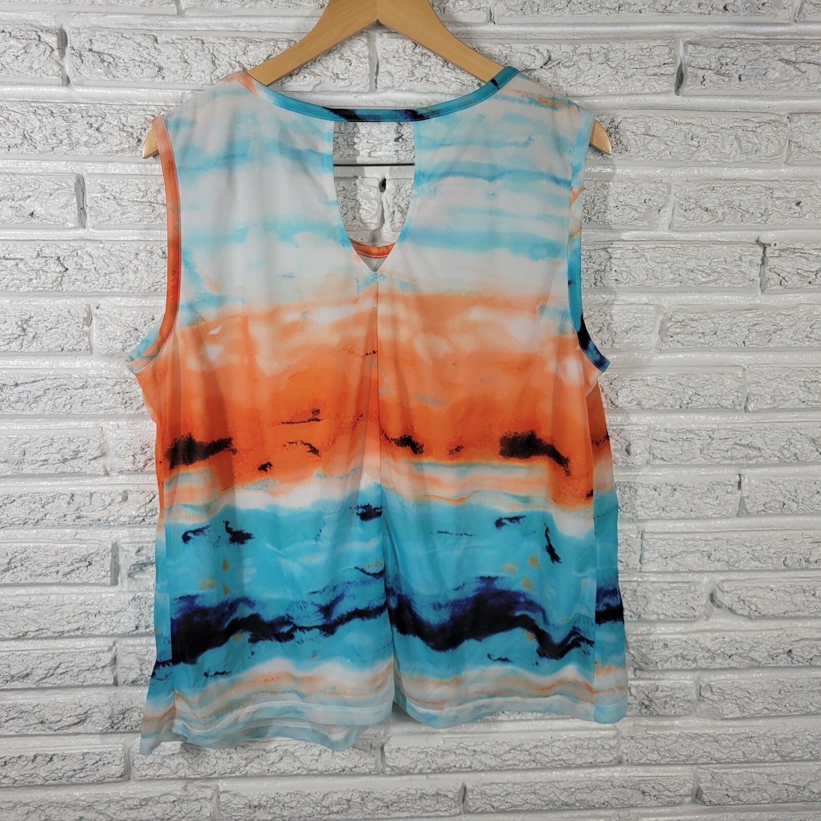 Worthington Womens Top 2X Plus Tank Chiffon Orange Watercolor Lined Lightweight
