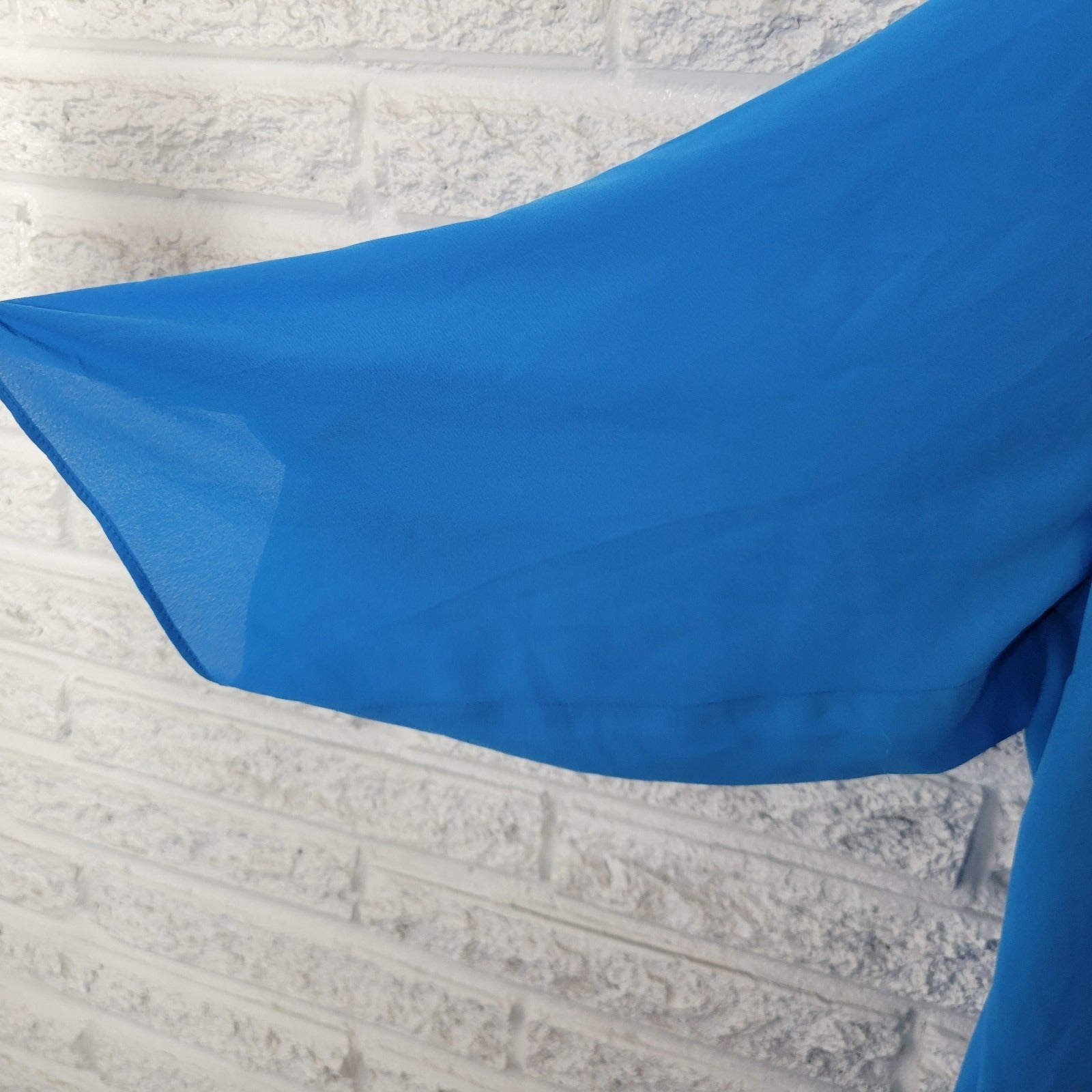 Worthington Womens Top 3X Plus Roll Tab 3/4 Sleeve Blue Lightweight Polyester