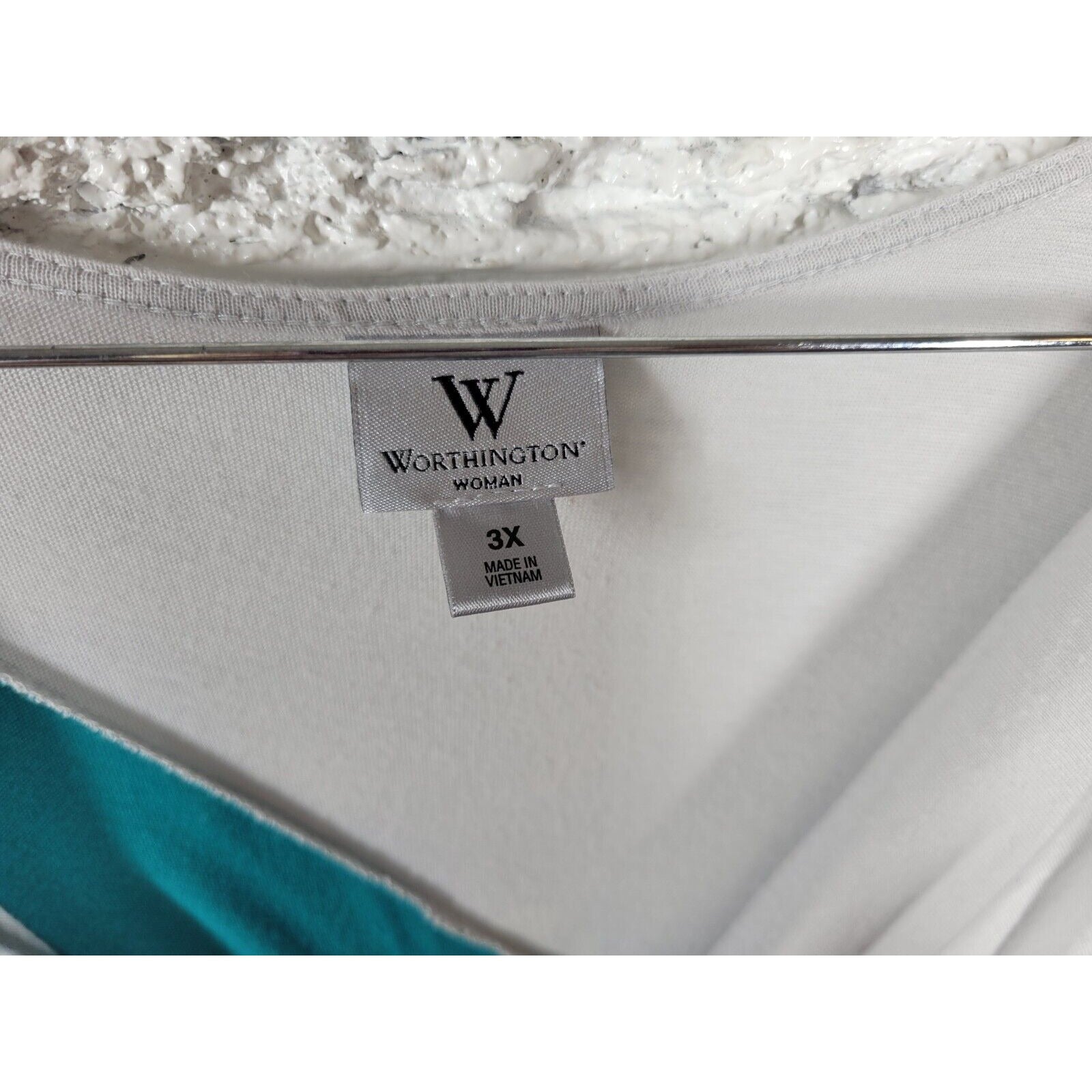 Worthington Womens Top 3X Sleeveless Blue Color Block Drape Neck Poly Blend