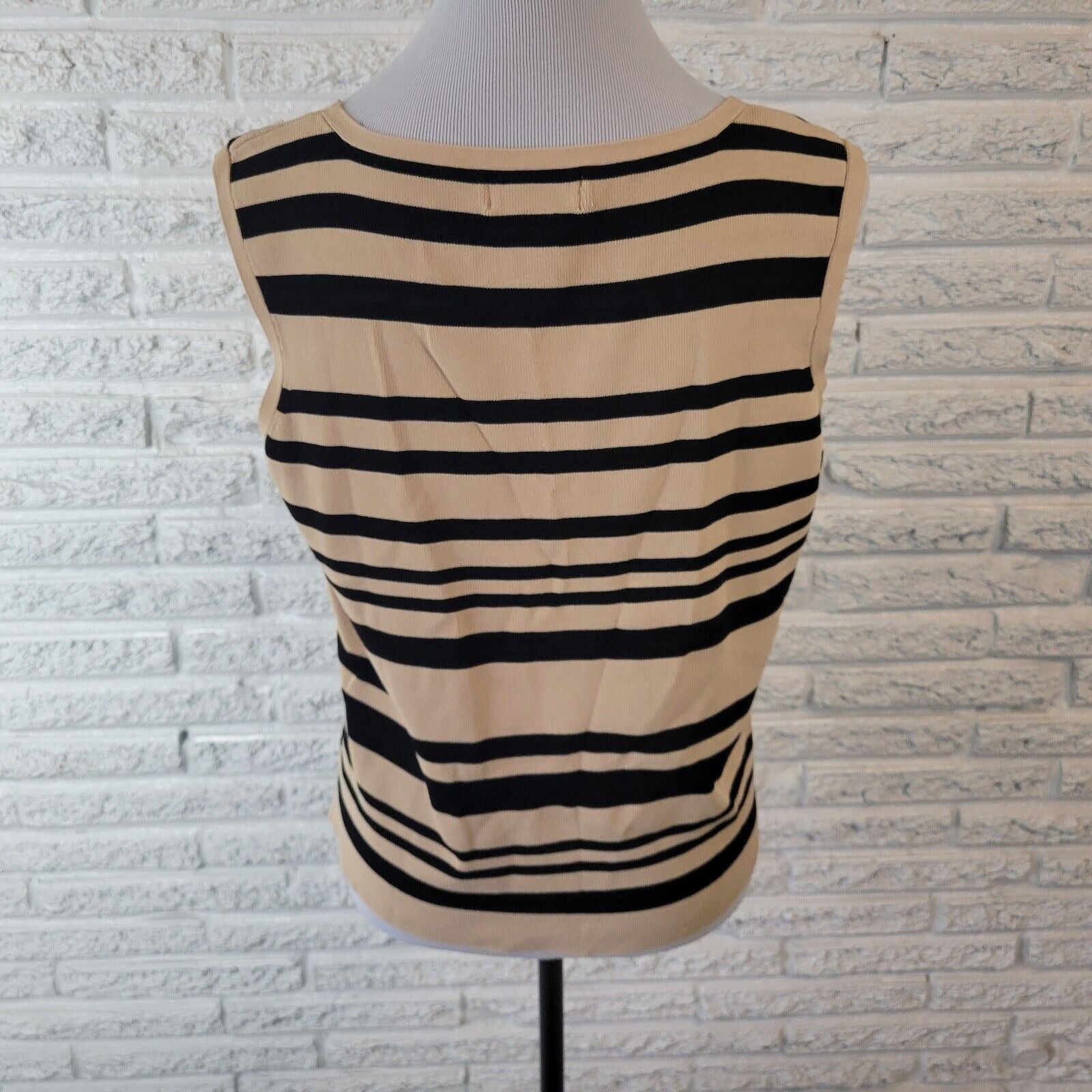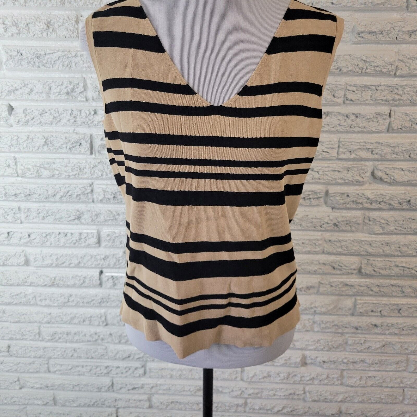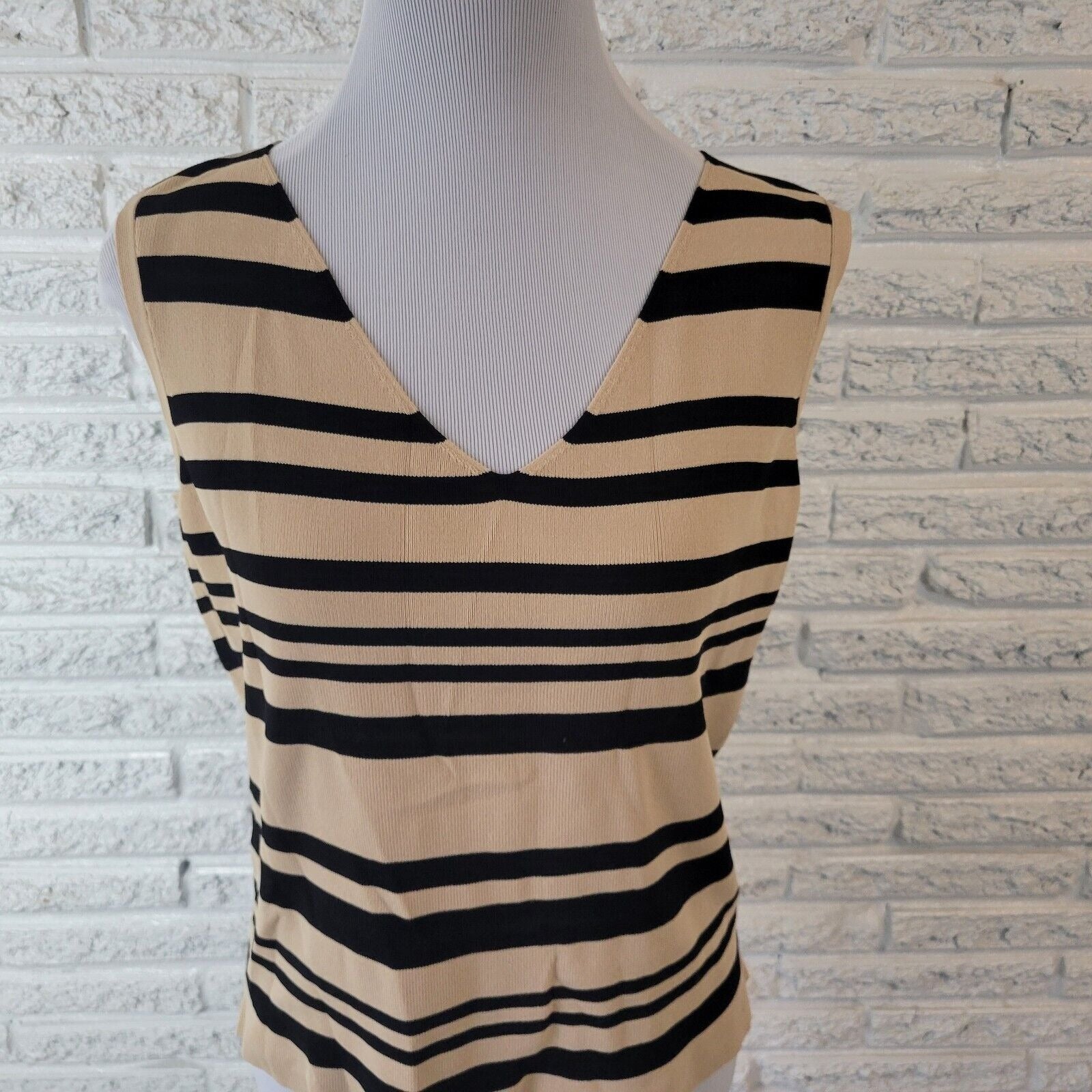 Worthington Womens Top Extra Large Sleeveless Black Beige Stripe Knit Office