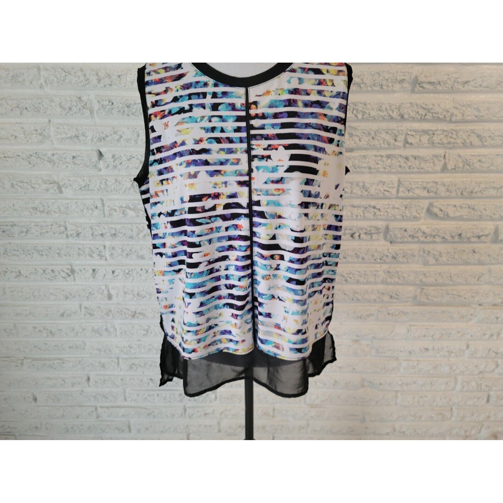 Worthington Womens Top Extra Large Sleeveless Casual Watercolor Poly Blend Blue