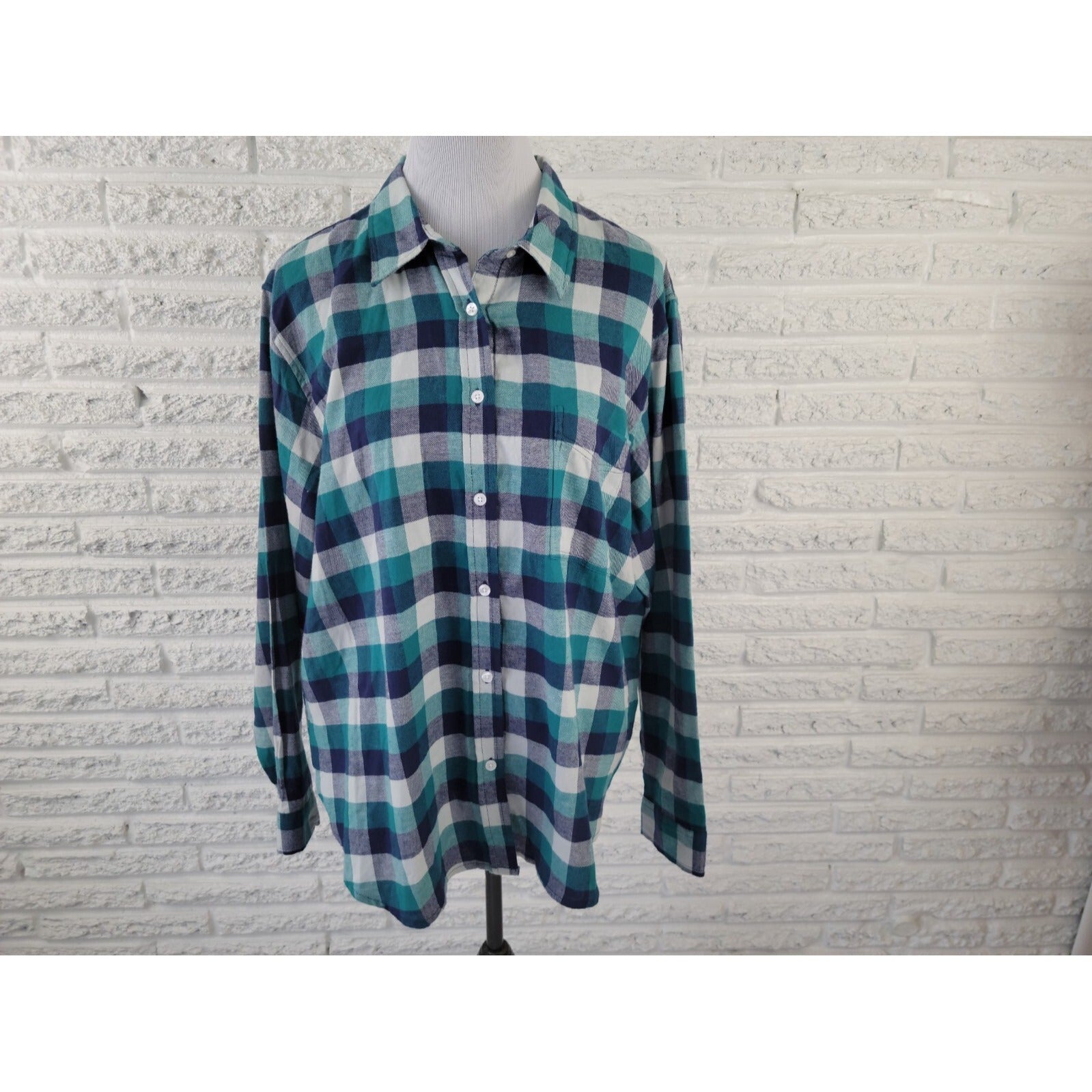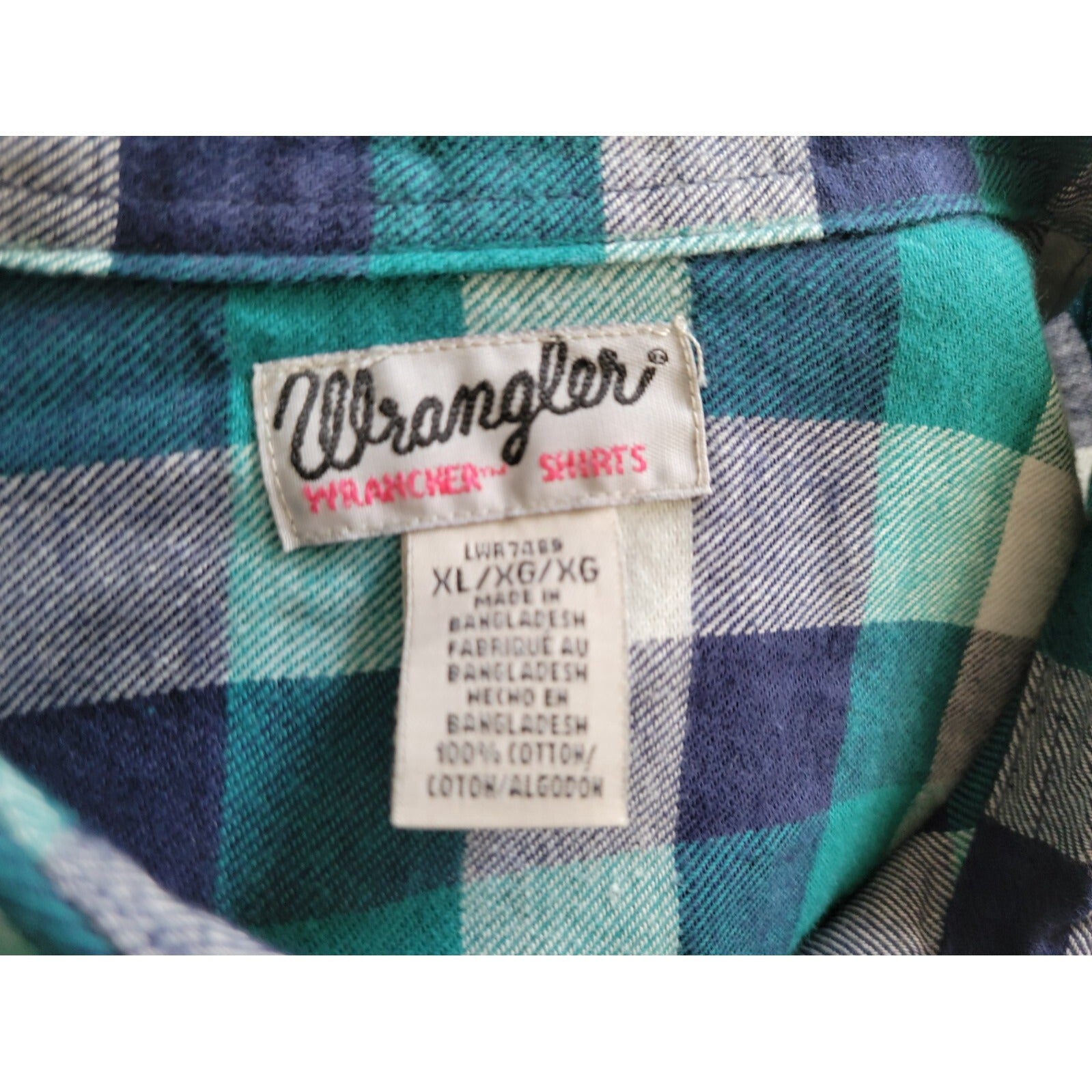 Wrangler Women Shirt Extra Large XL Button Up Blue Plaid Collar Cotton Casual
