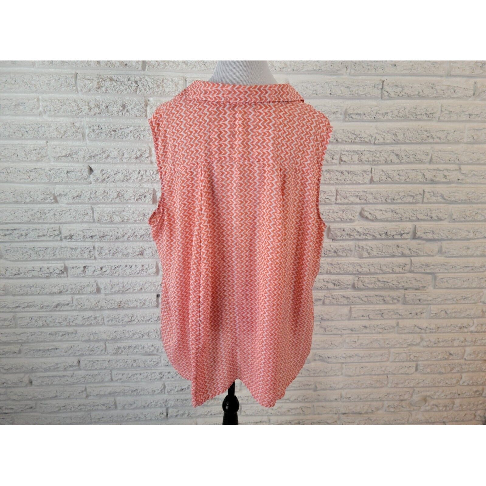 Zac Rachel Women Top 3X Sleeveless Orange Geometric Button Up Collar Lightweight