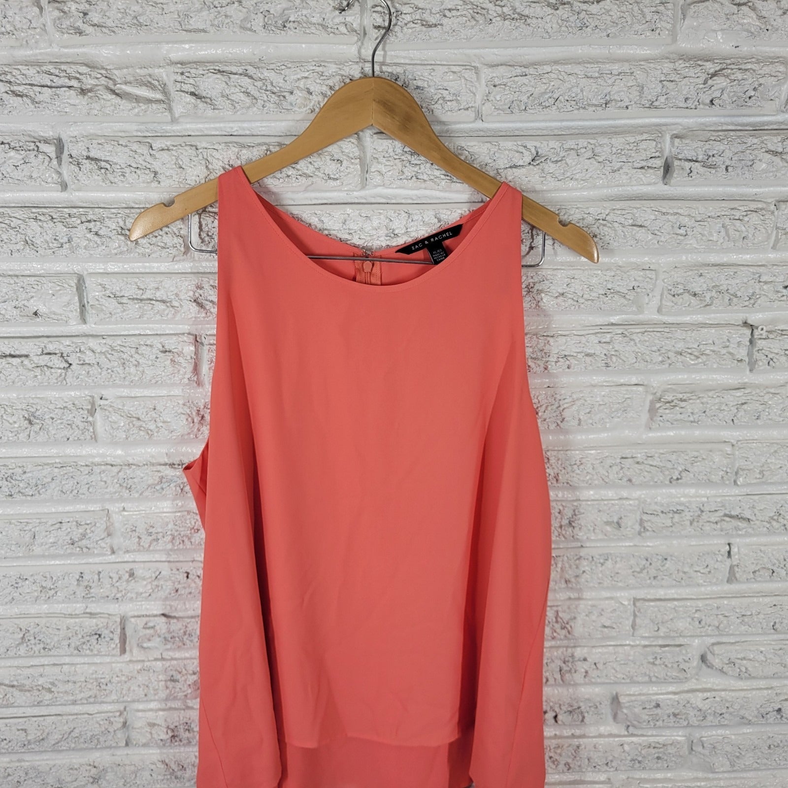 Zac Rachel Womens Top Extra Large Sleeveless Pink Zip Layered Split Back Office