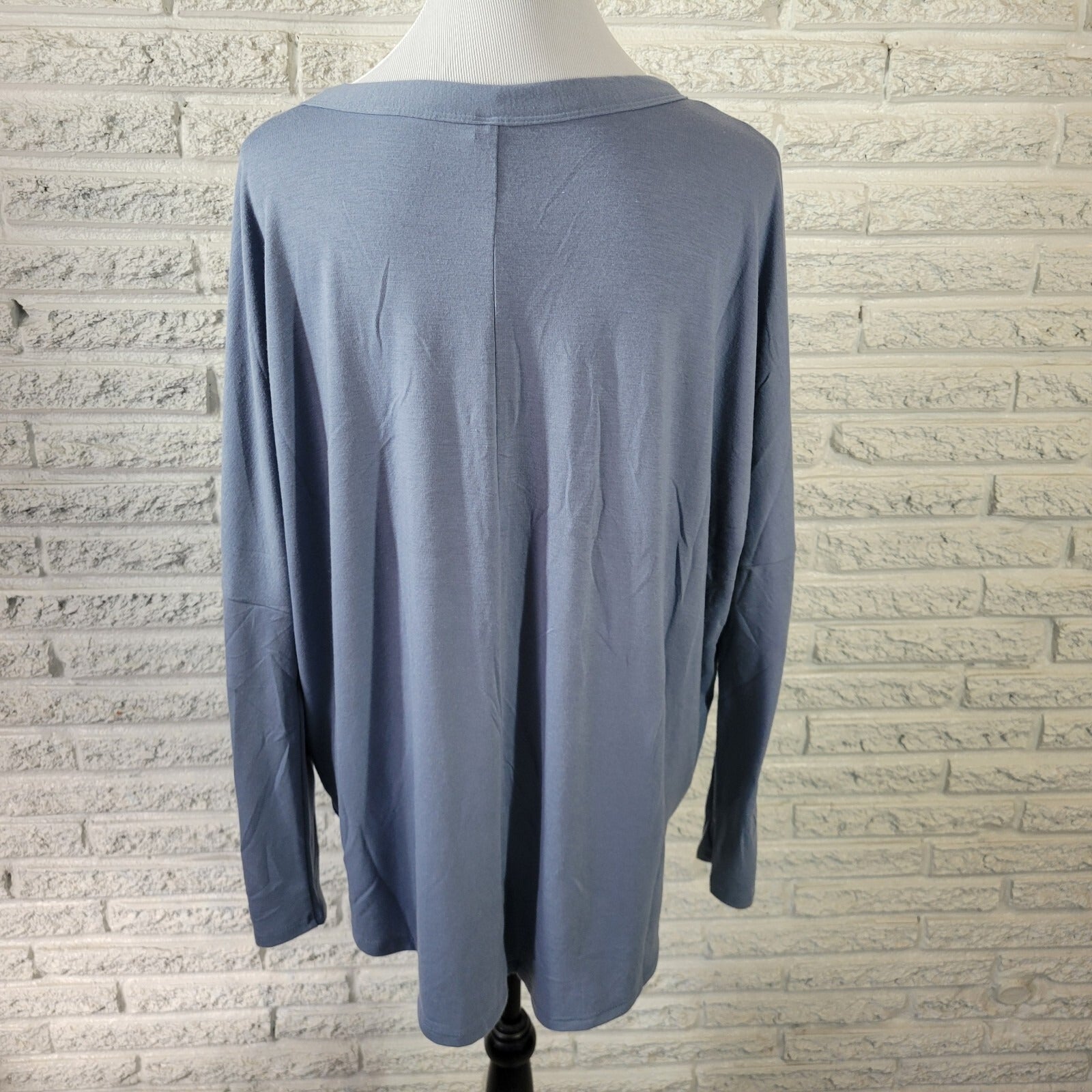 Zenana Premium Womens Top XL Cardigan Blue Button Up Poly Blend Casual Tied Hem