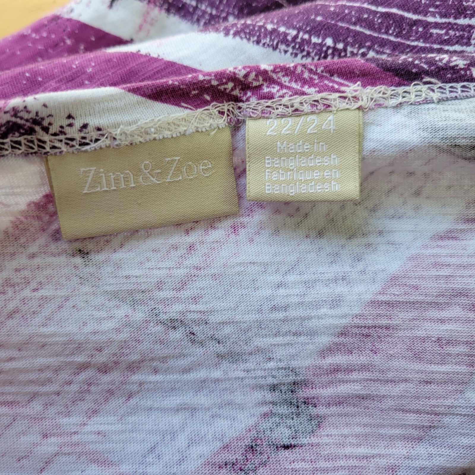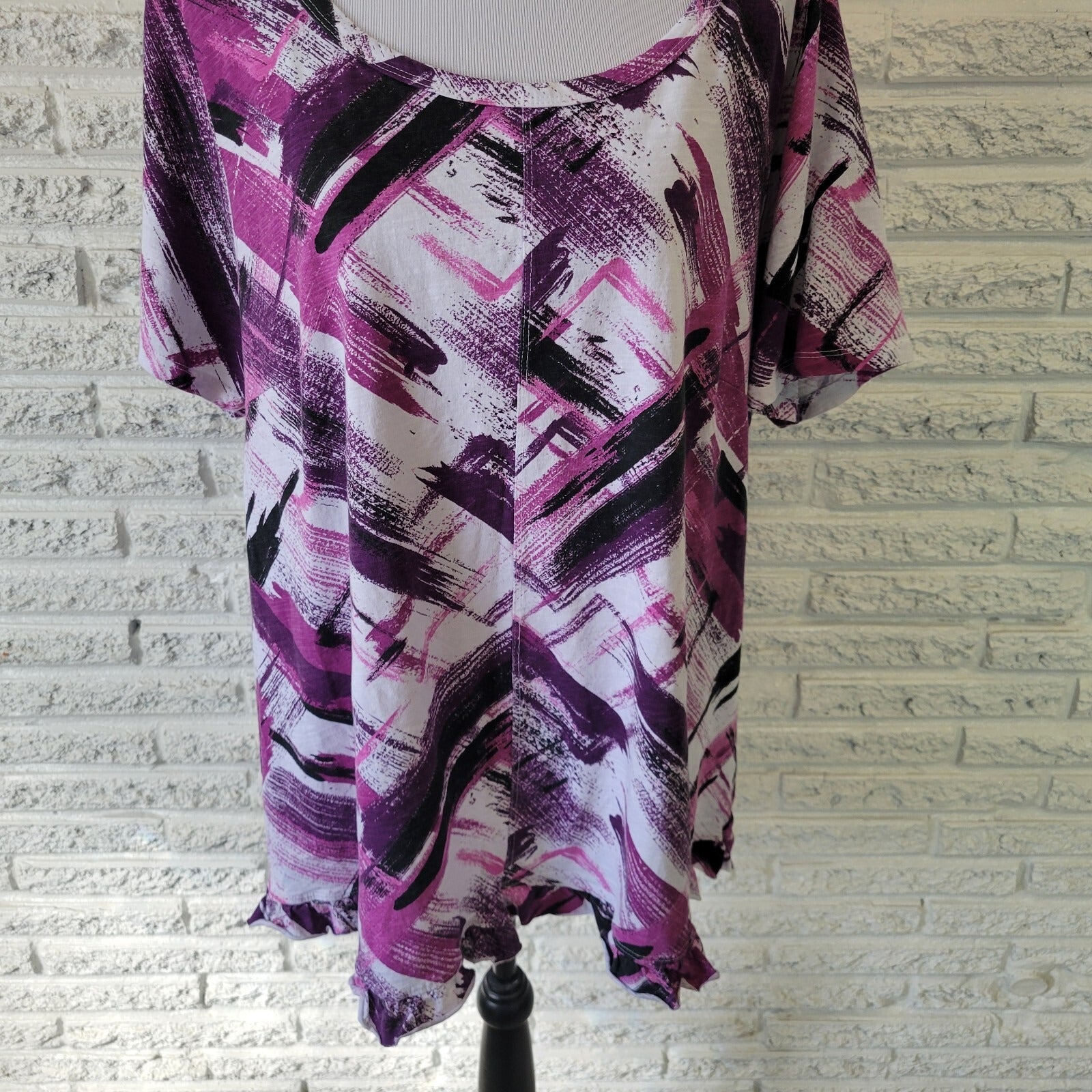 Zim Zoe Womens Top 22 24 Plus Tee Purple Watercolor Cotton Ruffle Casual Comfy